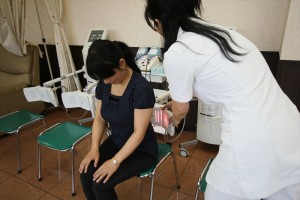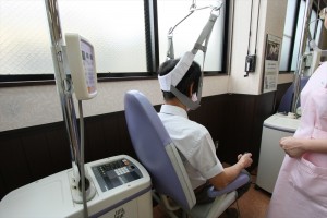 仰臥位の姿勢をとるのがつらい腰痛の患者さんでも負担をかけず椅子にすわる姿勢でそのまま牽引治療が行えます。